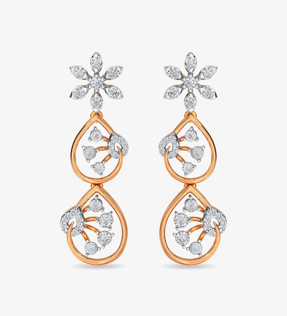 Diamond Trinity Earring Dangler Rose Gold